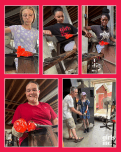 📢 Leaders-in-Training joined the Bold Adventures campers on Tuesday to explore and create blown glass art at Greenwood Glass Blowing Studio.