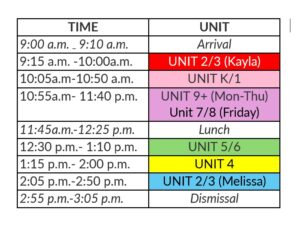 - Unit 7/8 – Lunch provided on Friday ONLY (Field Trips on Mon-Thu)