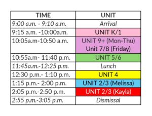 - Unit 9+ – Lunch provided on Monday-Thursday (Field Trip on Friday)