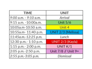 - Unit 7/8 – Lunch provided on Friday ONLY (Field Trips on Mon-Thu)