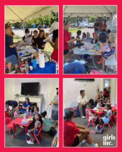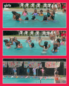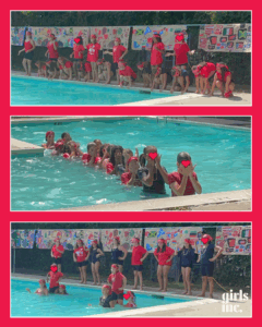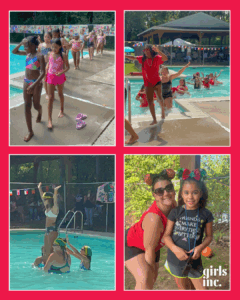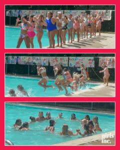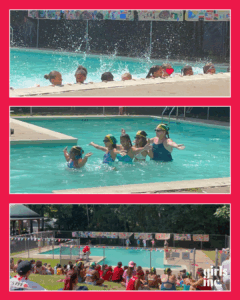 Campers celebrated culture and travel by dressing to reflect their heritage or favorite places. Activities for the End-of-Camp Celebration while family members shadowed their campers for the day included decorating self-portrait frames, gaga ball, button making, jumbo games, bubbles, and a tattoo station.ย Family guests enjoyed a special lunch, Paulitoโs Tropical Flavored Ices, and the Annual Camp Water Show, where more guests joined and each unit showcased their swim skills and performances with a tribute to cultures around the world.